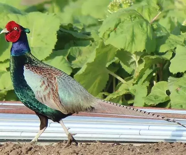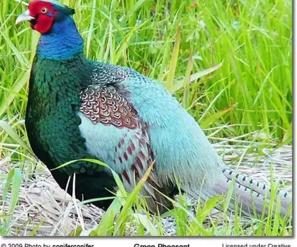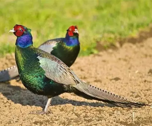 绿雉(学名:Phasianus versicolor):属于大型鸡类。全长约80厘米。雌雄差异很大,雄性具有大的肉冠和极华丽的羽毛。上体羽多呈紫铜、蓝绿等色,具金属光泽;下背及腰部羽白色。飞羽黑褐具绿缘,尾羽蓝绿色。是一种栖息在低地的鸟类,走禽。体结实,喙短,呈圆锥形,适于啄食植物种子;翼短圆,不善飞;脚强健,具锐爪,善于行走和掘地寻食。