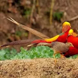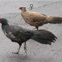 2.雄鸟色彩美丽、个性勇敢,雌鸟有强烈的母爱(日本传说中,在大火燎原的时候,母雉仍不会舍巢而去,会不顾危险伏在巢上保护它的卵)。