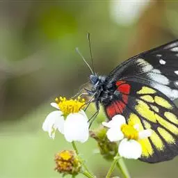 报喜斑粉蝶是粉蝶科斑粉蝶属的一种动物,又名红肩粉蝶、藤粉蝶等。幼虫群集性很强,从同一卵块孵化出的幼虫,…