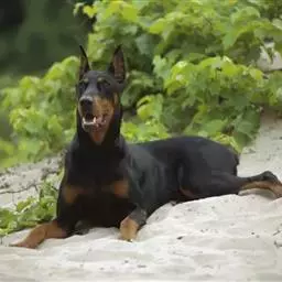 杜宾犬是一种十分凶猛的犬种,主要担当军、警工作,经过训练后,可成为搜索犬、狩猎犬和牧羊犬。…