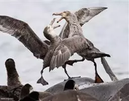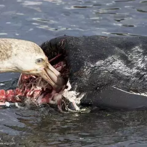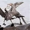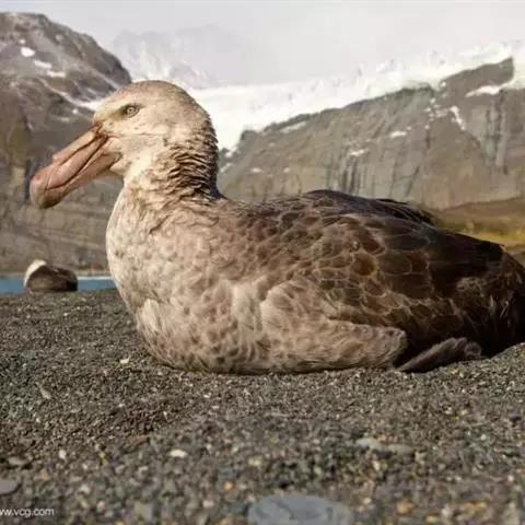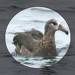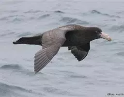 暴风鹱(学名:Fulmarus glacialis):为鹱形目鹱科下的一种中型海鸟,共有3个亚种。体长45-48厘米,体重0.5-1千克。外形和体色很像鸥,头、颈和下体白色,眼前有一黑色斑点,背、翅和尾珠灰色或淡褐灰色,嘴短,灰绿色或黄色。暴雪鹱和鸥的区别在于它呈管状的鼻和由数枚角质片构成的嘴以及较鸥窄而长的翅。不过在野外只要看到它那强直的翅和在紧贴海面上空时而两翅迅速地鼓动,时而又长时间地在海面上空滑翔,就不难将它从鸥群中指认出来。