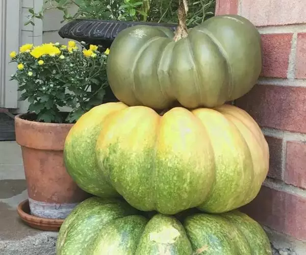 底部为深绿色,上方为橙黄色,并有淡黄色条纹相间,嫩瓜可食用,老熟