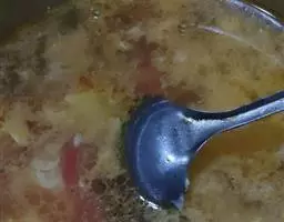 5.在正在熬的汤中挤中适量的柠檬汁。