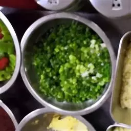 3.原锅加水6杯,再加1匙盐及两匙椰奶,将香茅碎、红椒碎、青柠檬片、薄荷叶及香叶放入水中,煮沸;