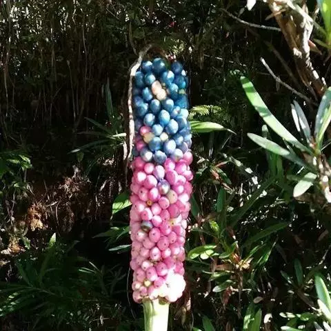 春夏开花,花葶直立,高出叶丛,佛焰苞直立向上,大而显着,稍卷,白色或微绿色,肉穗花序圆柱状,乳黄色。大型种,叶深色,花小、白色,生长慢。花期5-8月。