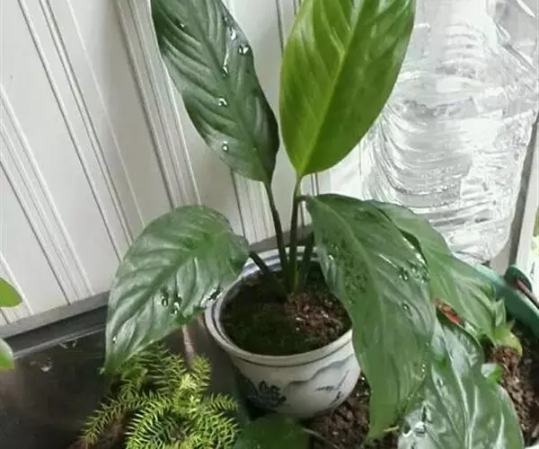 五。保湿及喷施叶面肥 为防止叶片干枯发生,日常护理时,应用清水喷洒叶面保湿,最好是每周喷施叶面肥一次,既能为叶片提供营养、增加叶面光泽,冬季还能达到抵抗低温的目的。使用观叶植物营养液,现蕾期,叶面需要喷2至3次0.3%的磷酸二氢钾溶液,能促使其开花。