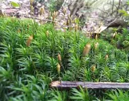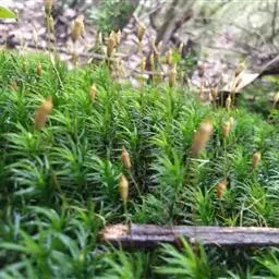 金发藓,在酸性而湿润的针叶林林地,该种多成大片生长,并常与灰藓属或白发藓属植物混生。
