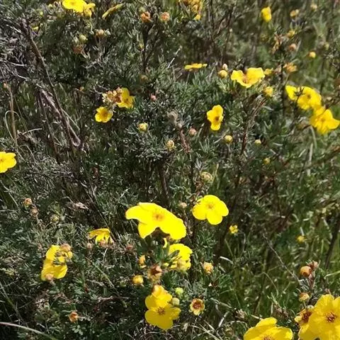 银露梅 Soják)是蔷薇科,金露梅属灌木,高可达2米,树皮纵向剥落。小枝红褐色,羽状复叶,…