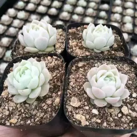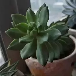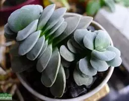 吉娃莲,景天科拟石莲花属,别名:吉娃娃,吉娃莲,植株小型,无茎的莲座叶盘非常紧凑。卵形叶较厚,带小尖,…