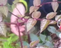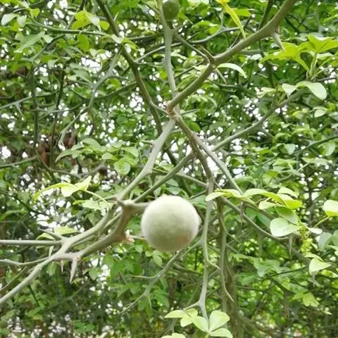 幼枝密被针刺及宽扁大形紫色皮刺,小叶片上面叶脉明显,…