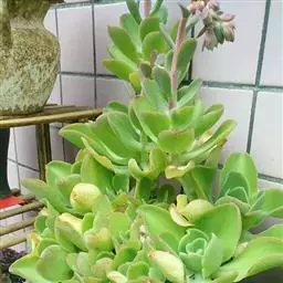 红缘莲花掌属蔷薇目、景天科植物,原产大西洋的加那利群岛。质厚,蓝绿色,被白霜,叶缘红褐色。聚伞花序,…