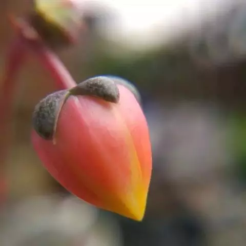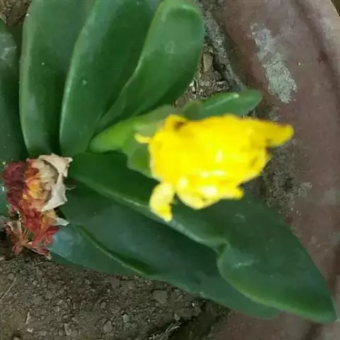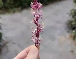 叶子表面宽厚,富肉质感且带有磨纱质感,看像石头质地;开红色小花,生于植株顶部,倒伞形密生,形状像花…