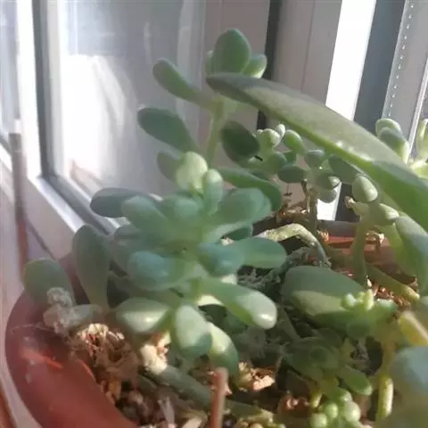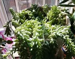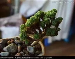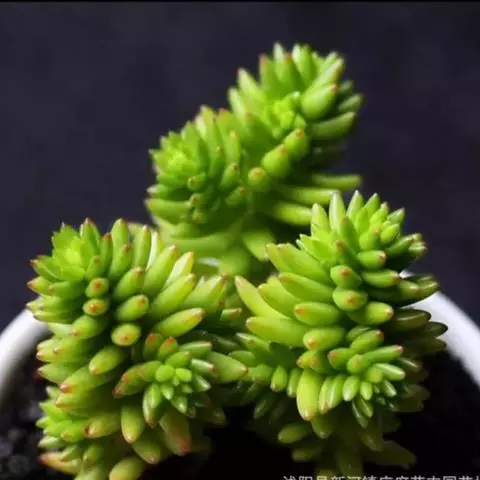 玉米石是景天科、景天属植物。多年生草本多浆植物。植株低矮丛生,多分枝。叶膨大成圆筒形、卵形或近小球形,…