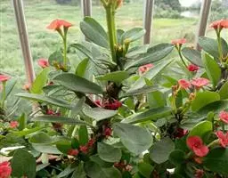 虎刺梅:别称铁海棠,是蔓生灌木植物。茎多分枝,长60-100厘米,直径5-10毫米,具纵棱,密生硬…