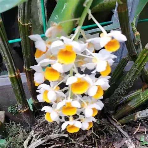 球花石斛,是兰科石斛属的多年生附生草本。茎直立或斜立,圆柱形,粗壮,基部收狭为细圆柱形,不分枝,…