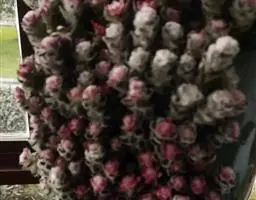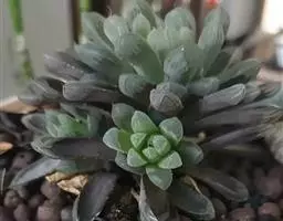 紫珍珠是景天科石莲花属的多年生肉质草本植物。植株中小型;叶片肉质,匙形,呈莲座状紧密排列;叶片粉紫色,…