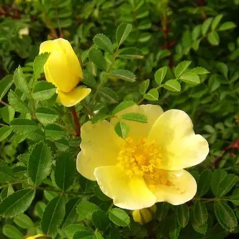 黄刺玫是蔷薇科蔷薇属的直立灌木。高2-3米;枝粗壮,密集;小叶片呈宽卵形或近圆形,边缘有圆钝锯齿,…