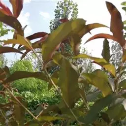 紫叶桃花是李亚科,桃属植物桃的变种,叶为窄椭圆形至披针形,长15厘米,宽4厘米,先端成长而细的尖端,…