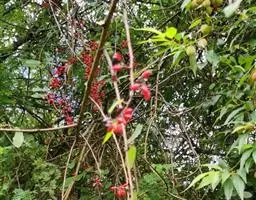 火棘 H. L. Li)是蔷薇科火棘属常绿灌木,老枝呈暗褐色;叶片呈倒卵形,边缘有钝锯齿,齿尖向内弯,…
