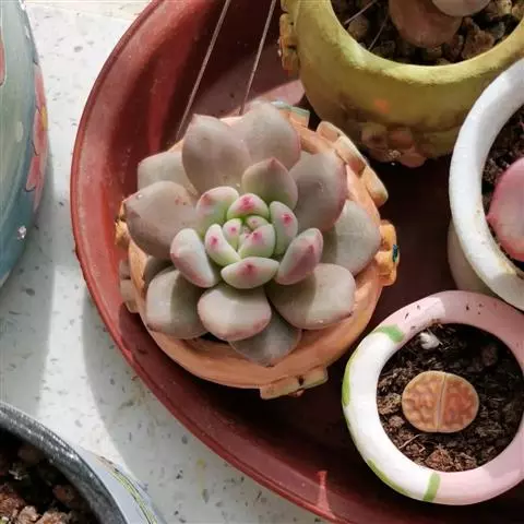 薄叶蓝鸟 叶片蓝绿色,叶尖红色,带粉,花型紧凑,非常漂亮。原产于墨西哥,现世界各地均有栽培。