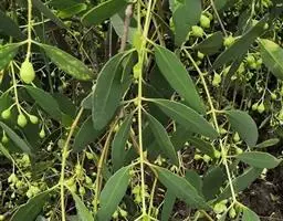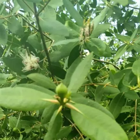 叶对生或簇生,呈长披针形至长圆形,或椭圆状披针形,长2-8cm,宽1-2cm,顶端尖,表面有光泽,背面中脉凸起;有短叶柄。