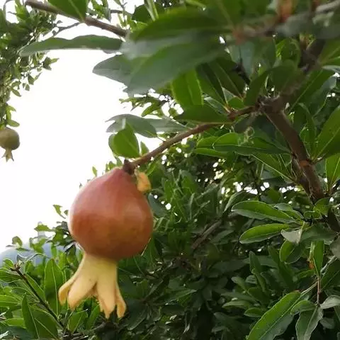 石榴(拉丁名:Punica granatum L.)落叶乔木或灌木;单叶,通常对生或簇生,无托叶。花顶生或近顶生,单生或几朵簇生或组成聚伞花序,近钟形,裂片5-9,花瓣5-9,多皱褶,覆瓦状排列;胚珠多数。浆果球形,顶端有宿存花萼裂片,果皮厚;种子多数,浆果近球形,果熟期9-10月。外种皮肉质半透明,多汁;内种皮革质。