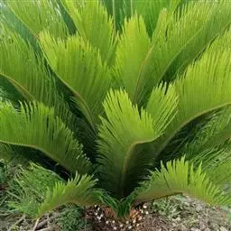 泽米苏铁科苏铁属。植物丛生,茎撑球状,叶为中型羽状复叶,簇生于茎顶,小叶为卵状椭圆形。雄雌异株,雄…