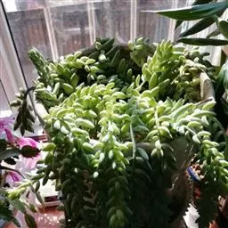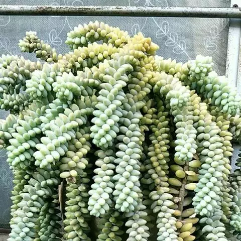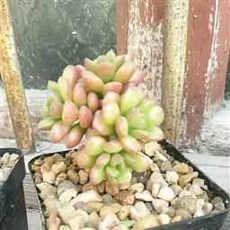 玉米石是景天科、景天属植物。多年生草本多浆植物。植株低矮丛生,多分枝。叶膨大成圆筒形、卵形或近小球形,…
