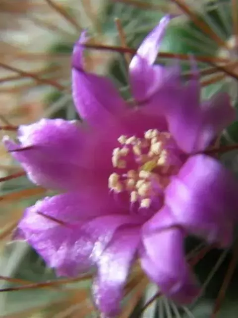 松霞是仙人掌科乳突球属的多年生肉质植物。单个球体小,呈圆筒状,暗绿色,疣状突起小,呈圆形,刺座无毛,…