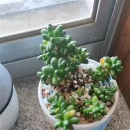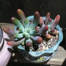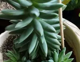 千佛手(xSedeveria 'Harry Butterfield')又名王玉珠帘、菊丸,是景天科的多肉植物,景天属与拟石莲花属的跨属杂交种。无明显休眠期,幼株比较矮小,多年生老株会形成垂吊状,非常适合家庭盆栽。此品种最早在美国加利福尼亚州被培育,又名玉缀和静夜。