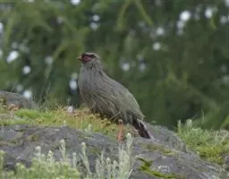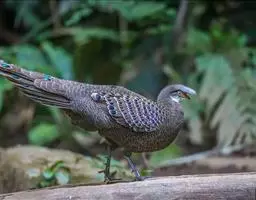 褐马鸡(学名:Crossoptilon mantchuricum)是中国特产珍稀鸟类,体高约60厘米,体长1-1.2米,体重5千克,全身呈浓褐色,头和颈为灰黑色,头顶有似冠状的绒黑短羽,脸和两颊裸露无羽,呈艳红色,尾巴高高竖起。翅短,不善飞行,两腿粗壮,善于奔跑。