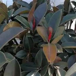 印度榕,别名橡皮树,桑科榕属多年生常绿乔木植物。株高30米;树皮灰白色,平滑;叶厚革质,…