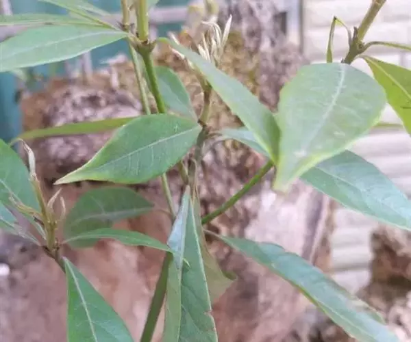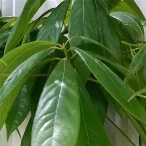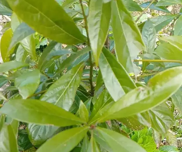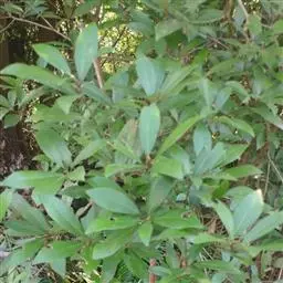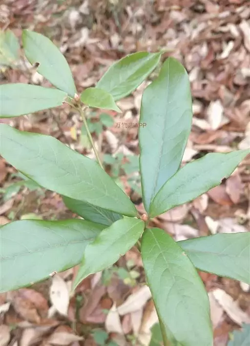 常绿大乔木,高达30余米,胸径1米;幼枝有棱,被黄褐色或灰褐色柔毛,2年生枝黑褐色,无毛。叶长圆形,长圆状倒披针形或窄椭圆形,长5一11厘米,宽1.5一4厘米,先端渐尖,基部楔形,上面有光泽,中脉上被柔毛,下面被短柔毛,侧脉约14对;叶柄纤细,初被黄褐色柔毛。圆锥花序腋生,被短柔毛,长4-9厘米;花被裂片6,椭圆形,近等大,两面被柔毛;发育雄蕊9枚,被柔毛,花药4室,第3轮的花丝基部各具1对无柄腺体,退化雄蕊长约1毫米,被柔毛,三角形;雌蕊无毛,长2毫米,子房近球形,花柱约与子房等长,柱头膨大。果序被毛;核果椭圆形或椭圆状卵圆形,成熟时黑色,长约13厘米,花被裂片宿存,紧贴果实基部。