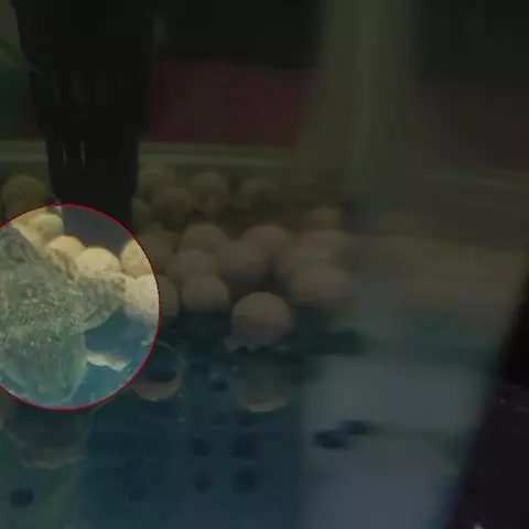 霉菌最初寄生时, 肉眼不易察觉。随着菌丝大量生长, 在鱼卵表面或鱼苗表皮可以肉眼观察到棉絮状附着物。