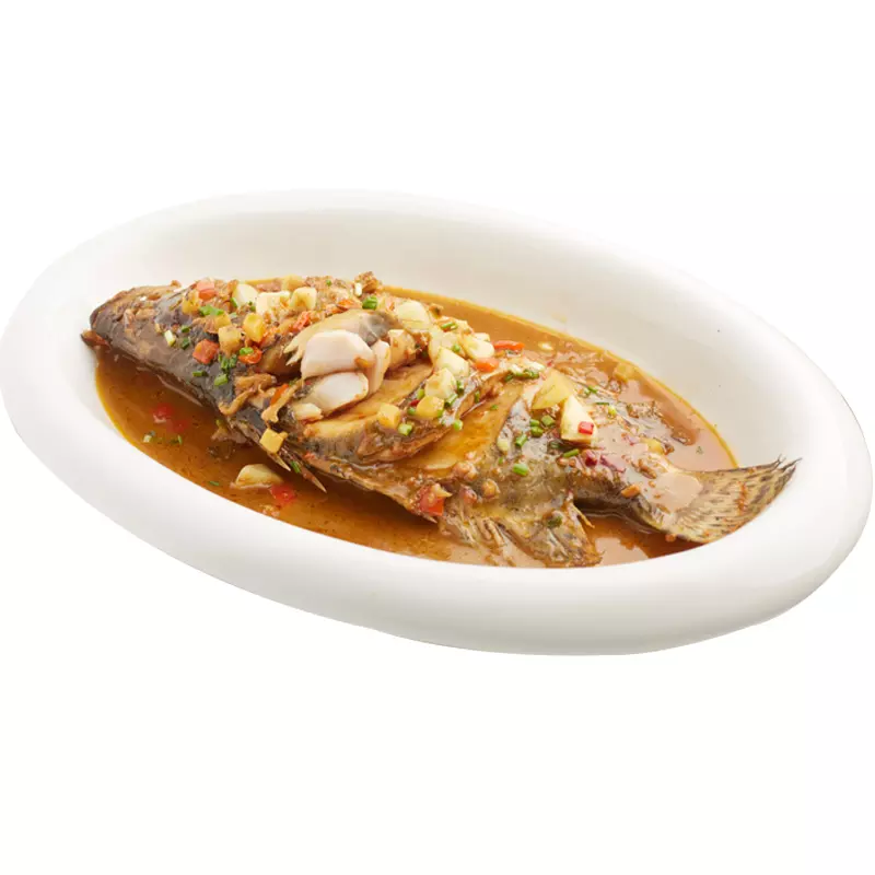 体高侧扁,背隆起,头大、口裂略倾斜,两颌,犁骨均具绒毛状齿,上下颌前部的小齿成犬齿状;体色棕黄,腹灰白,圆鳞甚细小;体侧有不规则暗棕色斑块、斑点。大的能长到十几斤重。