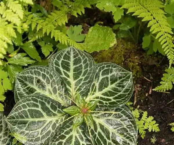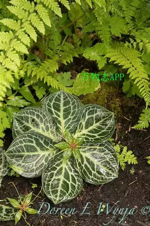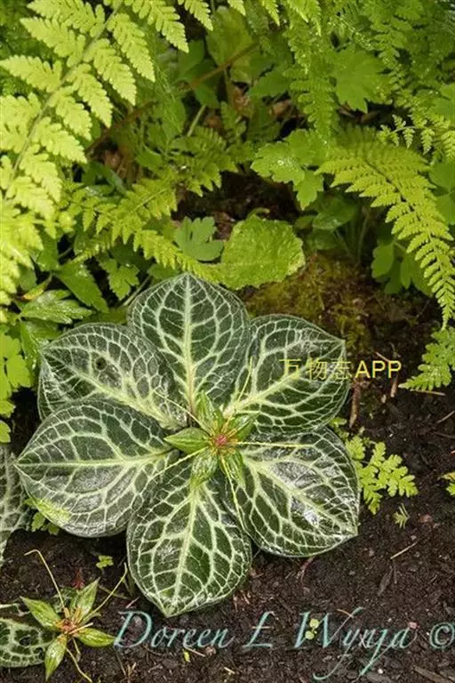 多年生直立草本,高7-18厘米;根状茎粗短,直径达8毫米。叶(4-)5-6枚轮生,披针形或狭披针形,长5.5-6.5厘米,宽1.4-2.1厘米,上表面深绿色,沿脉具有白色斑纹,下表面紫褐色,近无柄。