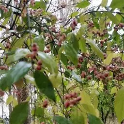 中华卫矛为卫矛科常绿灌木或小乔木,高1-5米。叶革质,质地坚实,常略有光泽,倒卵形、长方椭圆形或长方阔披针形,长4-13厘米,宽2-5.5厘米,先端有长8毫米渐尖头,近全缘;叶柄较粗壮,长6-10毫米,偶有更长者。