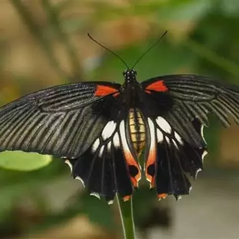 曙凤蝶是凤蝶科、曙凤蝶属蝴蝶。体背黑色,头、颈、胸侧及腹侧具红色鳞毛。雌、雄异型。雄蝶翅黑绒色,…