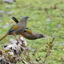 橙翅噪鹛:是噪鹛科、彩翼噪鹛属的中型鸟类,体长22-25厘米。头顶深葡萄灰色或沙褐色。上体灰橄榄褐色,…