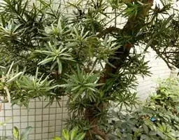 老干深褐至黑褐色,外皮呈纵向条状剥裂,片状脱落,枝梢较短而柔软,灰绿色,分枝力差。短叶罗汉松原产于中国云南山区,现南北各地主要用于盆栽观赏。