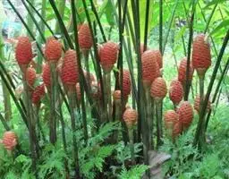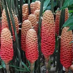 珊瑚姜是姜科、姜属植物。株高近1米。叶片长圆状披针形或披针形,长20-30厘米,宽4-6厘米,…