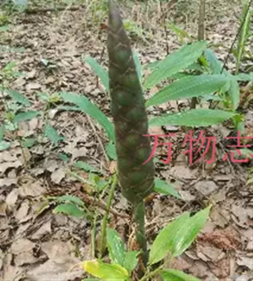 总花梗长15-20厘米,被紧接的、长4-5厘米的鳞片状鞘;穗状花序长圆形,长15-30厘米;苞片卵形,长3-4厘米,顶端急尖,红色;花萼长1.5-1.8厘米,沿一侧开裂几达中部;花冠管长2.5厘米,裂片具紫红色斑纹,长圆形,长1.5厘米,顶端渐尖,后方的一枚较宽;唇瓣中央裂片倒卵形,长1.5厘米,侧裂片长8毫米,顶端尖;花丝缺,花药长1厘米,药隔附属体喙状,长约5毫米,弯曲;子房被绢毛,长2-2.5毫米。种子黑色,光亮,假种皮白色,撕裂状。花期5-8月;果期8-10月。
