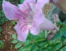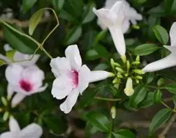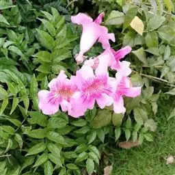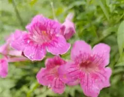 粉花凌霄 K.Schum.)是紫葳科魔盒凌霄属的落叶藤本植物。奇数羽状复叶对生,小叶全缘,…