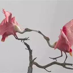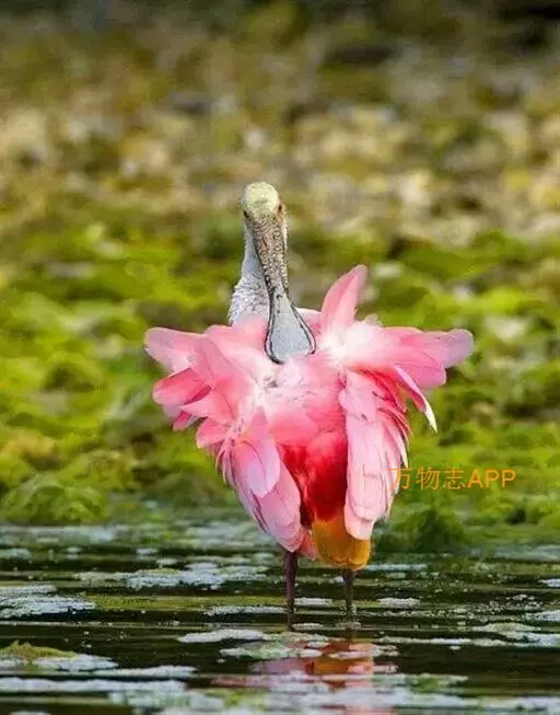 南美洲和北美洲的玫瑰红琵鹭(Ajaia ajaja)体长约80公分,体羽深桃红色,颈和上背白色。分布自德克萨斯州的墨西哥湾海滨和西印度群岛到阿根廷和智利。