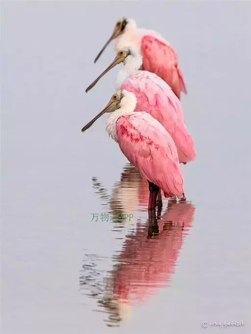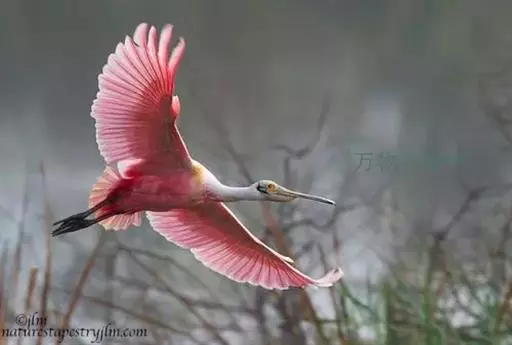 粉红琵鹭:体高87厘米,翼展127厘米,体重1300克,寿命10年。是一种大型涉禽。脚很长,喙长而…