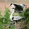 琵鹭觅食 琵鹭繁殖期为夏季,在中国的繁殖期一般为5~7月份,喜集群繁殖。通常营巢于苇塘深处的芦苇丛中或临水上,成群营巢,巢与巢之间距离很近,一般1~2米,巢一般呈圆筒状,用树枝、芦苇、苇叶等编成,内垫草茎和草叶。每年繁殖1次,每窝产卵3~5枚。卵呈白色,长椭圆形,孵化期21天。雌雄亲鸟共孵、共育。28日离巢,35~40日能飞。10月中旬南迁至越冬地。