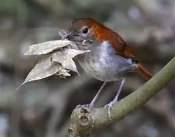 白喉短翅鸫是鹟科、短翅鸫属小型鸟类,体长12-13厘米。上体锈褐或橄榄褐色,眼上方有1-2枚白羽,…