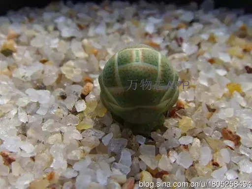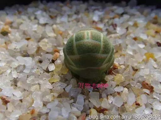 矮小,对生叶紧包形成柱状,株体倾斜至匍匐,多年生植株易从基部萌发侧芽,群生植株直径达3.5-9厘米。