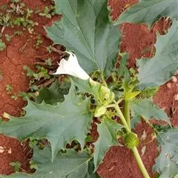 曼陀罗,茄科曼陀罗属一年生大型草本植物,全株光滑。有臭气;叶呈广卯形,…