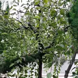 树皮暗灰色,粗糙,不规则纵裂。幼树枝条直立,且被白色毛;老树枝条先端下垂,有时木栓质发达成为瘤状。…